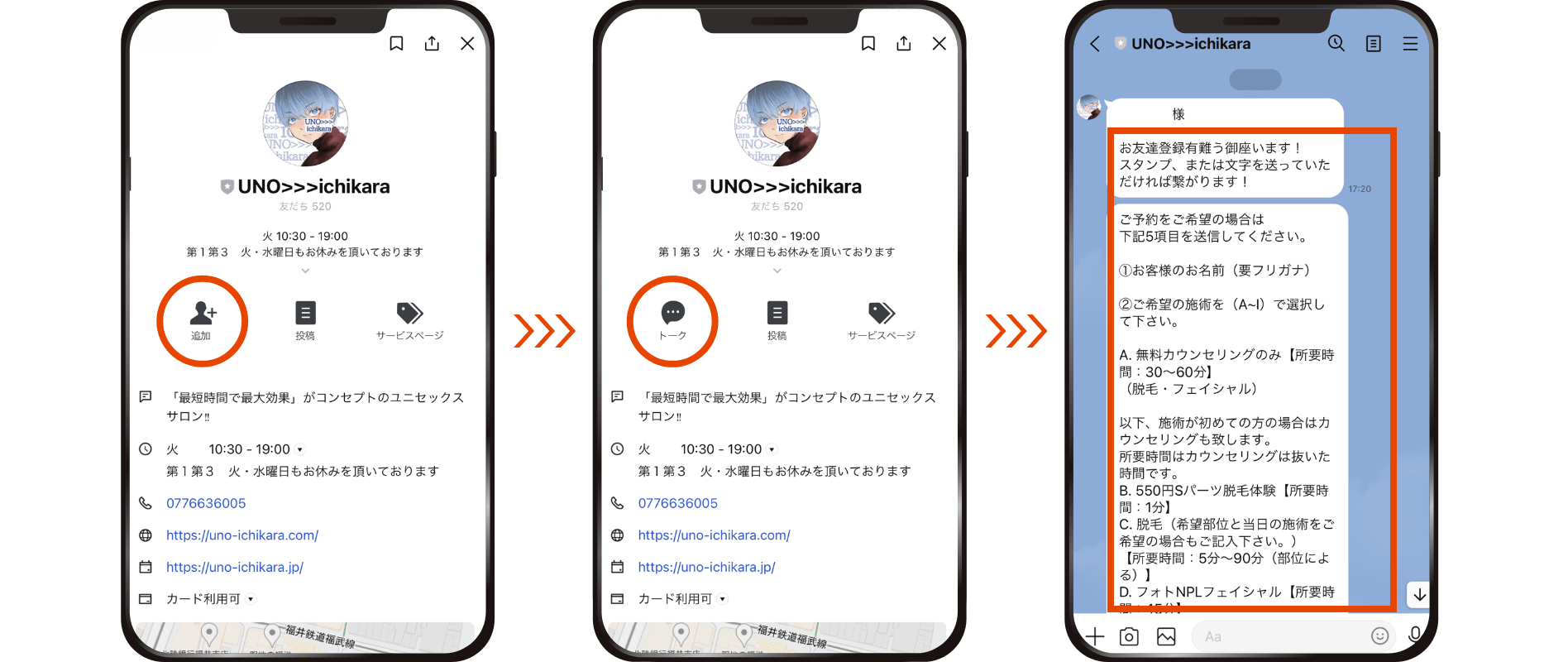 STEP 02トーク画面からお客様情報を入力して予約画面に進んでくださいトーク画面からお客様情報を